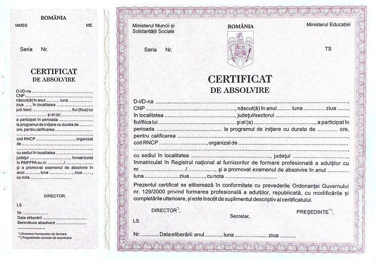 La finalul cursului vei obține un Certificat de Absolvire recunoscut atât național, cât și internațional, eliberat de Ministerul Muncii și de Ministerul Educației. În funcție de nivelul tău de educație și cursul ales, vei fi calificat ca PROGRAMATOR SISTEM INFORMATIC (COD C.O.R. 251204), PROGRAMATOR AJUTOR (COD C.O.R. 351201) sau MANAGER PROIECT (COD C.O.R. 241919) , deschizându-ți astfel calea către o carieră promițătoare în IT.